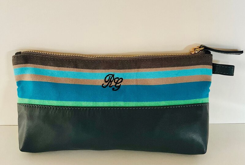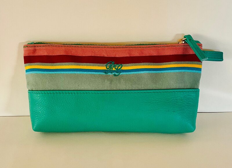 Petite trousse en toile basque et cuir 100% agneau pleine peau. Forme légèrement trapézoïdale. Fermeture avec une fermeture éclair. Intérieur doublé de tissu à motifs, avec 2 petites poches de rangement. Hauteur 12 cm x Largeur 23 cm x fond 4,5 cm